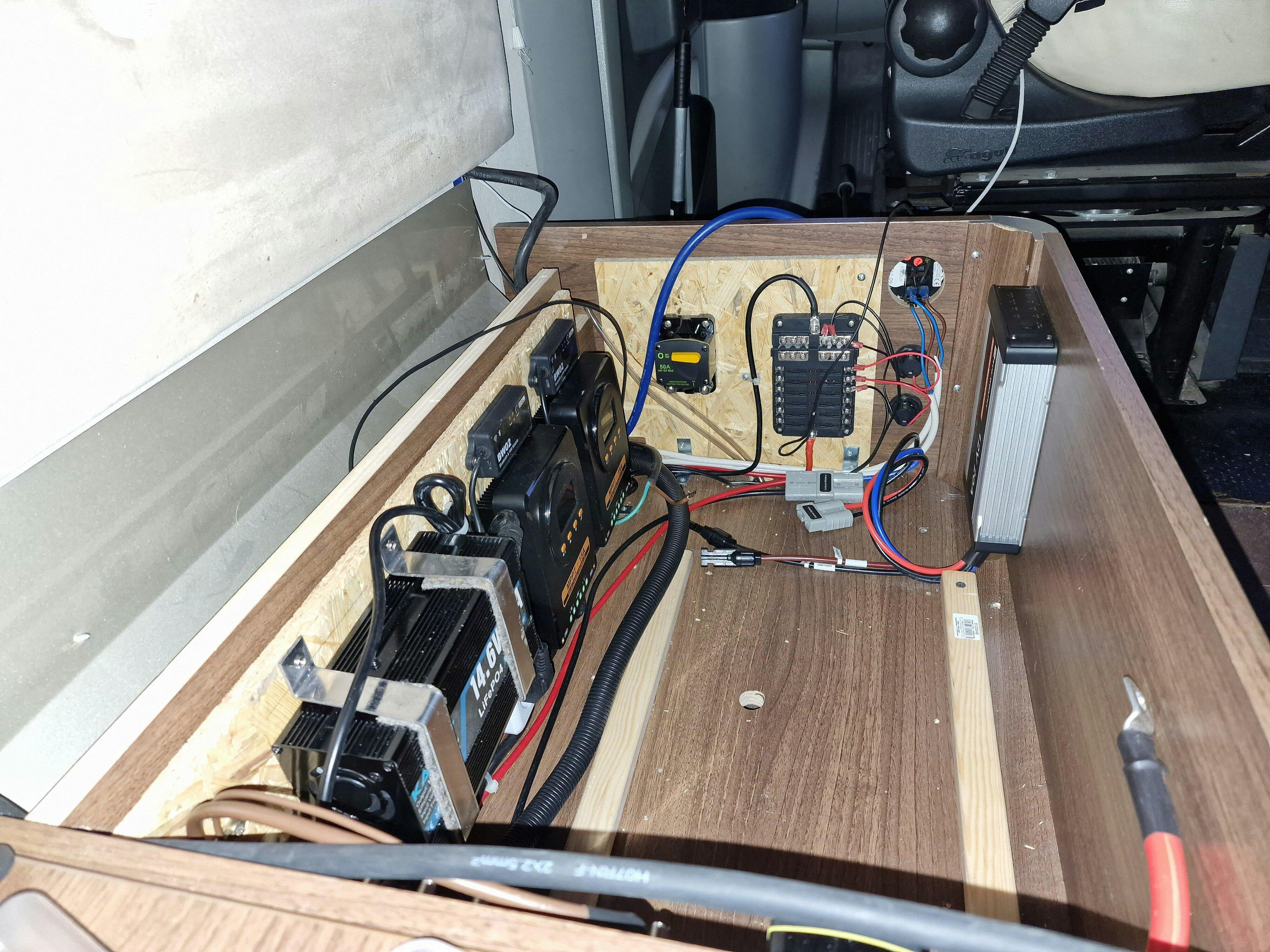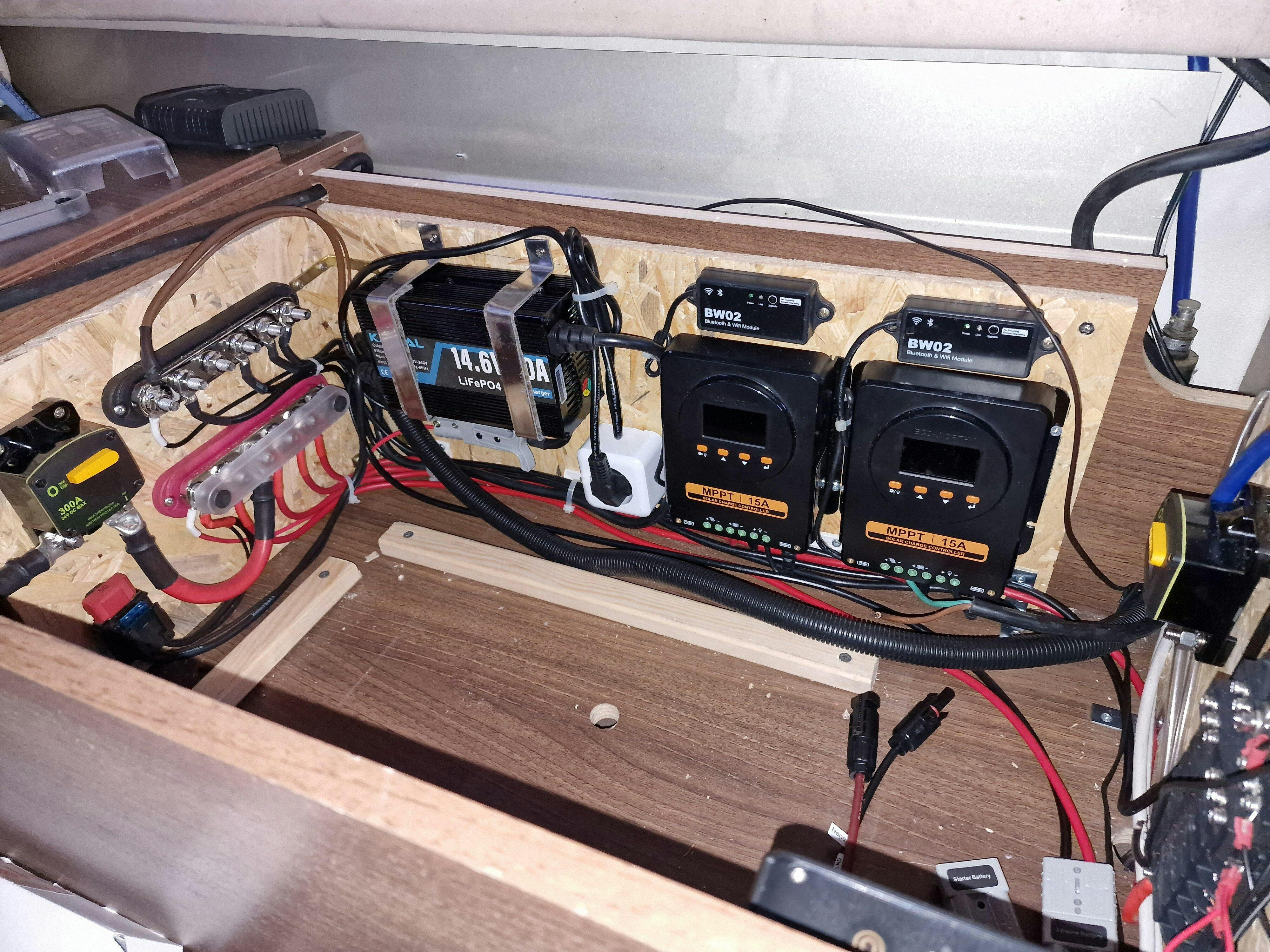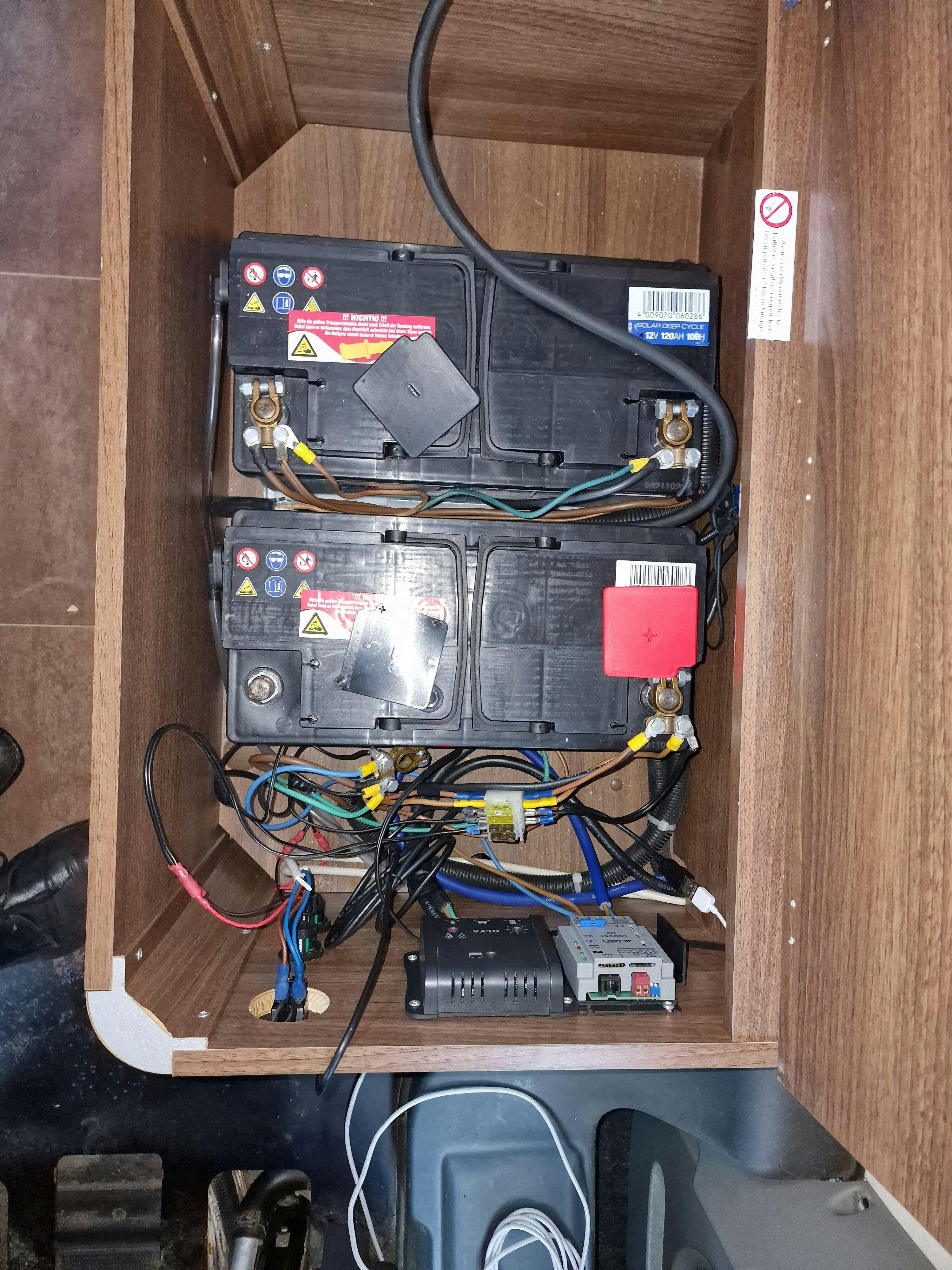 Da meine AGM Batterien wieder einmal defekt waren, habe ich mich entschieden, auf LiFePo 4 umzustellen. Bei der Gelegenheit wurden auch die Solarregler und weitere Komponenten ausgetauscht.