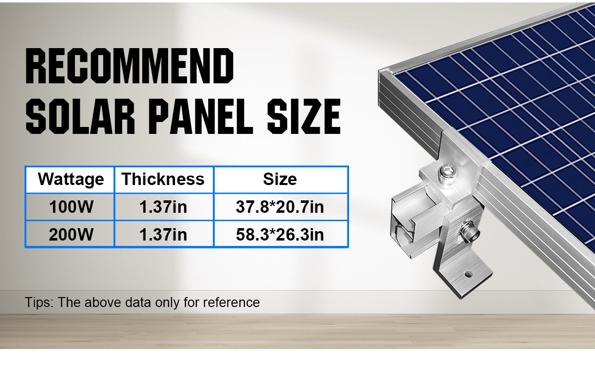 ·Compatible: Suitable for any size rigid solar panels. Suggested solar panel thickness: 1.37inch (35mm).